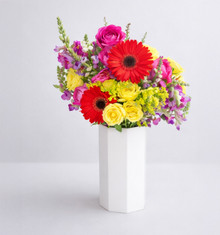 Bouquet of bright and cheery flowers, ready to celebrate!