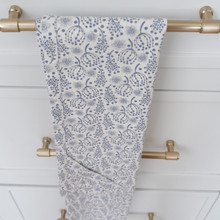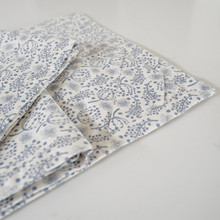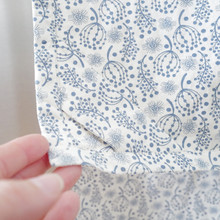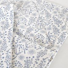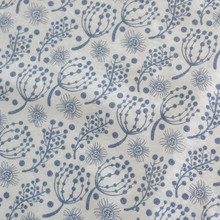 The printed cotton is OEKO-TEX certified non-toxic. An off-white ivory background with a muted blue modern pattern. Looks fantastic against gold, silver, or black hardware / appliances.