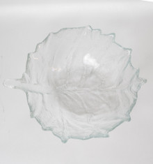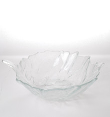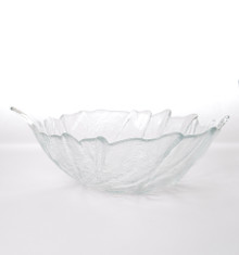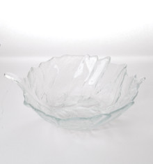 A striking example of mid-century American art glass, this 12-inch Blenko cabbage bowl features a sculptural, organic form inspired by layered cabbage leaves. Crafted in hand-blown clear glass, the bowl showcases Blenko’s signature fluid lines, softly ruffled rim, and substantial weight. The textured surface catches and diffuses light beautifully, creating subtle movement and dimension. Both functional and decorative, it makes an elegant centerpiece or statement display piece.